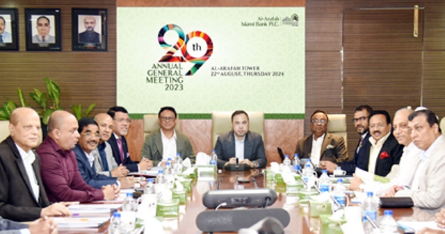 The 29th Annual General Meeting (AGM) of Al-Arafah Islami Bank PLC. has approved 10% Cash Dividend and 5% Stock Dividend for the year ended on 31 December 2023 held on 22 August 2024, Thursday. Chairman of the Bank Alhajj Salim Rahman presided over the meeting.