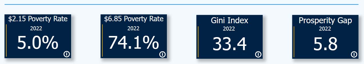 • Poverty rate at $3 a day (2021 PPP): 5.91pc in 2022
