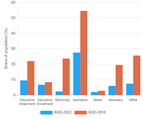 • Multidimensional poverty headcount ratio 7.4pc in 2022